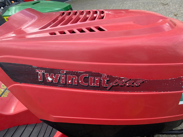 Plataforma de corte inclinable con 2 cuchillas para un corte preciso y continuo, ideal para terrenos irregulares. Ruedas antidesgaste para proteger el césped de caídas accidentales de las cuchillas.